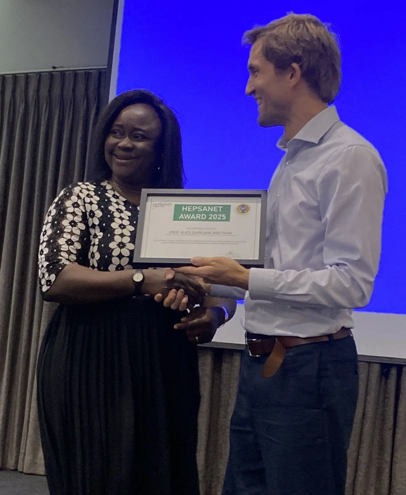 Alice Guingane Nanelin receiving the 2025 HEPSANET award